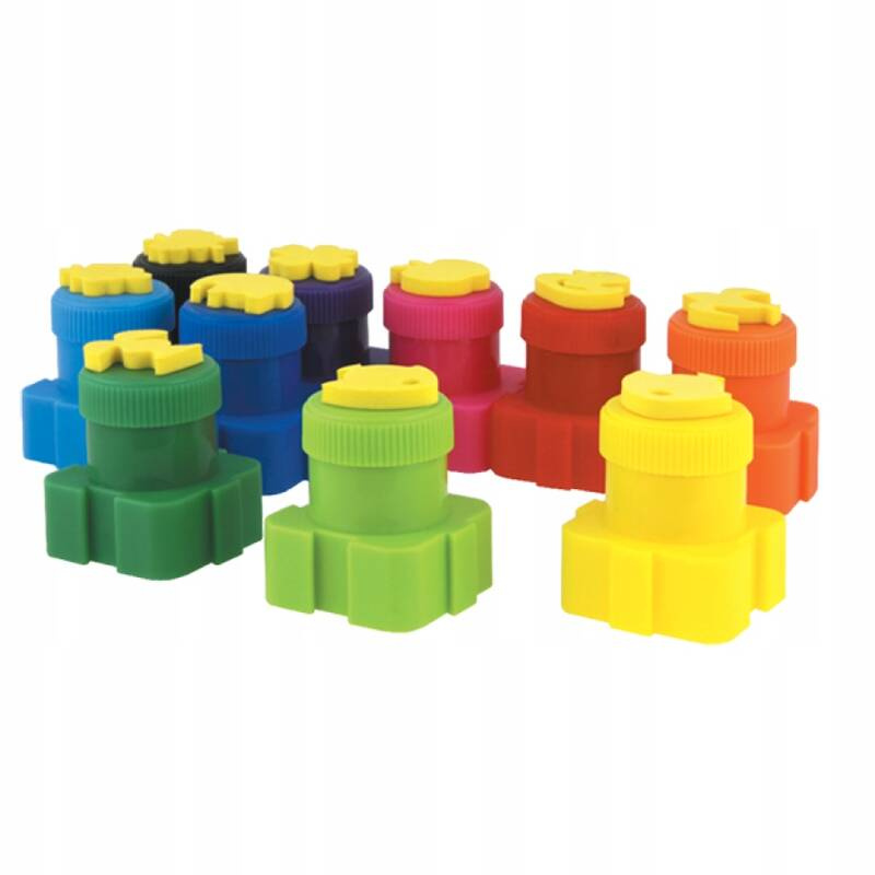 Pojemniczki z farbkami mają kształt puzzli, które można dowolnie ze sobą łączyć.