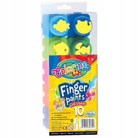 Colorino Farbki do malowania palcami w 10 kolorach z pieczątkami.