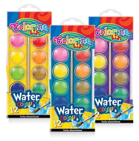 Farby akwarelowe 12 kolorów duża pastylka Colorino Kids