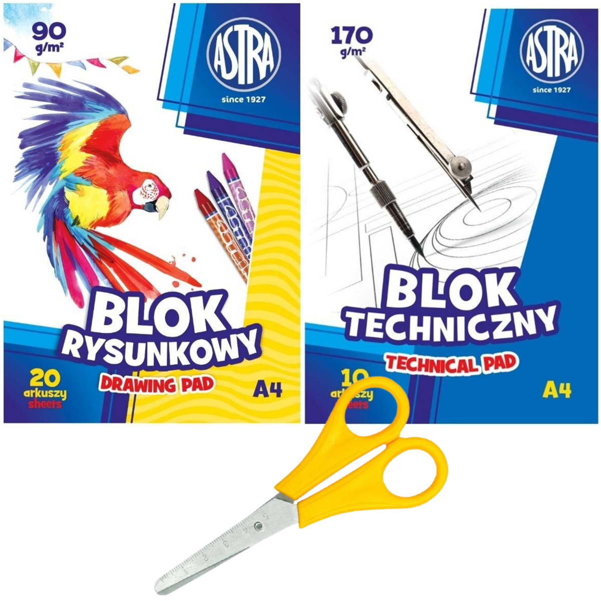 Blok rysunkowy firmy Astra w formacie A4, 20 arkuszy o gramaturze 90g