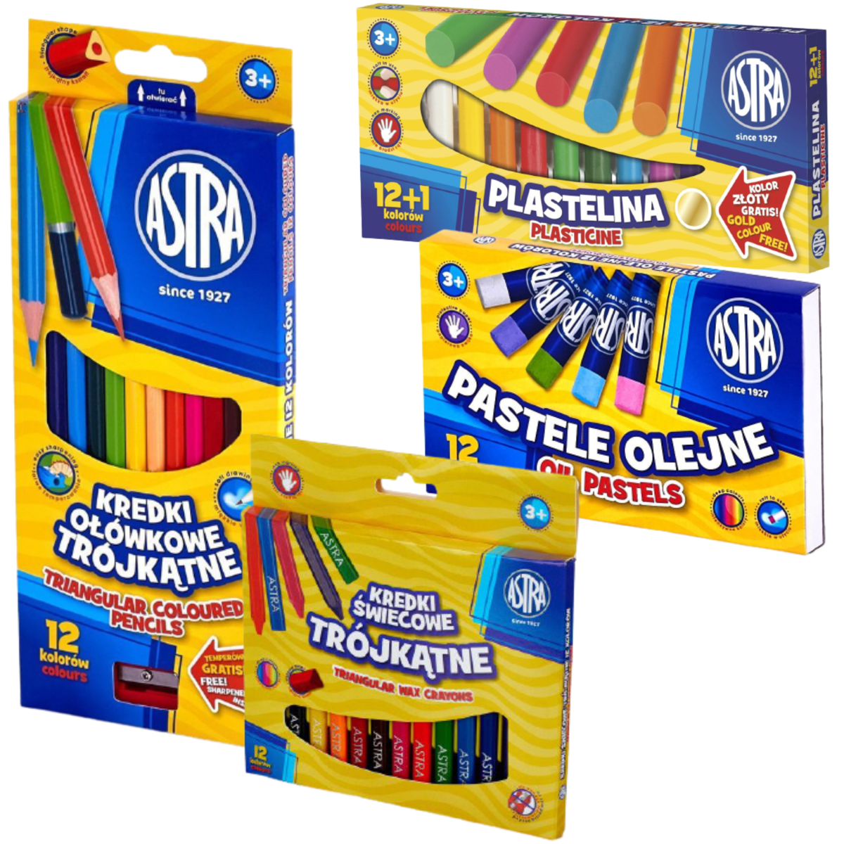 Kredki ołówkowe Astra zrobione z wysokiej jakości materiałów mają trójkątny kształt, dzięki czemu wymuszają prawidłowe ułożenie dłoni. Są miękkie w użyciu, nie pylą się i nie rozmazują a kolory są wyraziste i żywe. Są łatwe do temperowania a dodatkowo w opakowaniu zawierają temperówkę gratis.
