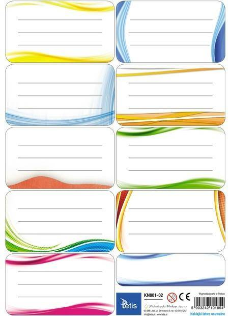 • Naklejki na zeszyty i książki z zaokrąglonymi rogami, łatwo usuwalne. Na arkuszu znajduje się 9 etykiet. Jednostka sprzedaży: folia 25 arkuszy.