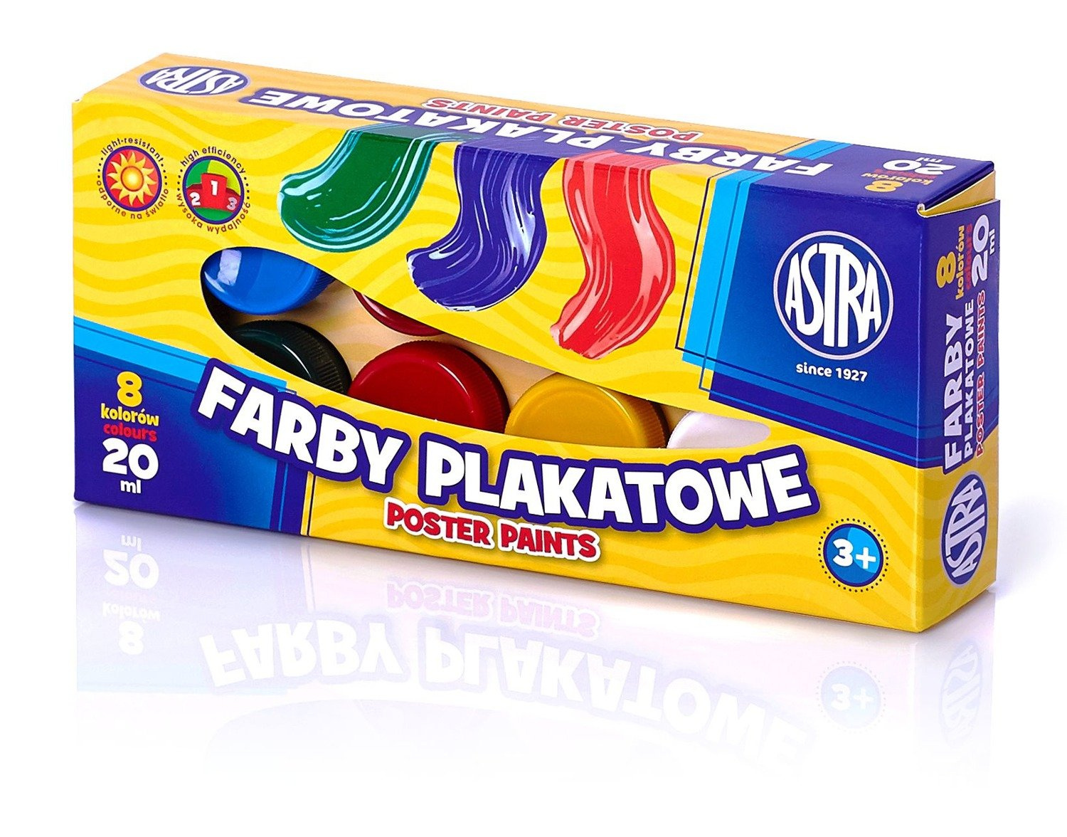 Farby plakatowe od znanego i cenionego producenta artykułów szkolnych, firmy Astra.