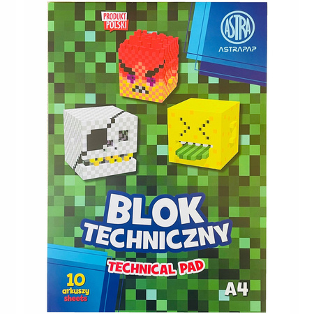 Blok techniczny Astra zawiera 10 białych kartek, okładka jest dodatkowo nabłyszczana a całość usztywniona tekturowym podkładem.