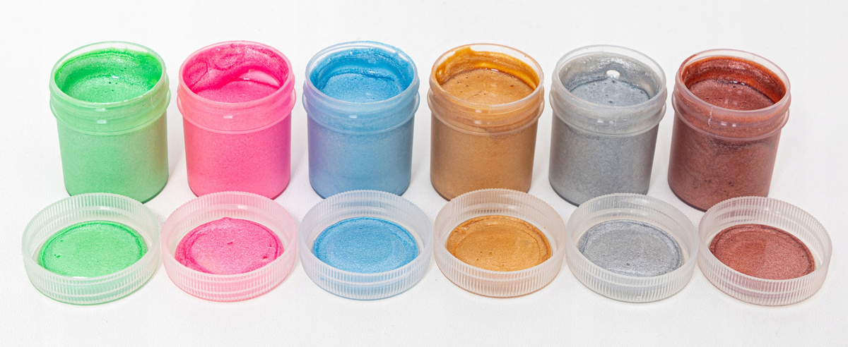 Farby w zakręcanych słoiczkach o pojemności 20 ml, o wyrazistych, nasyconych kolorach i atrakcyjnym design.