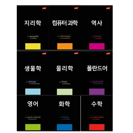 Zestaw zawiera komplet 9 zeszytów szkolnych - przedmiotowych